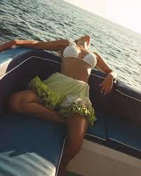 Tatil fotoları sosyal medya ve medyada dikkat çeken bikinili moda defilesi tadındaki görselleri.
